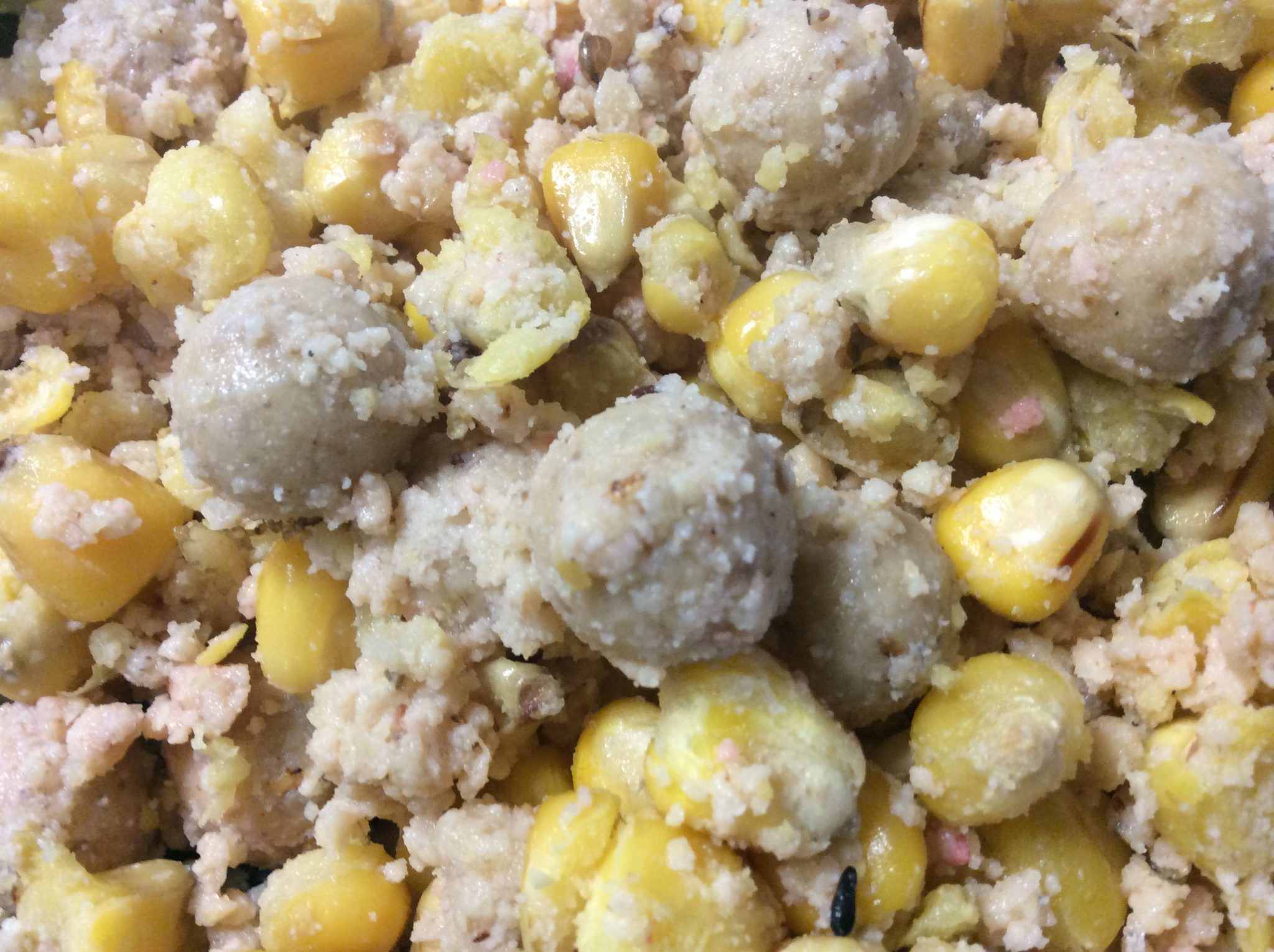 The spod mix I used consisted of 1kg of both 14mm Nutcracker and Strawberry Nutcracker boilies, 1kg of maize and ½ kg of crumbed Strawberry Nutcracker boilies. I left the frozen maize in the bucket over night to defrost as the gloopy liquid that is emitted after the cooking process acts as a glue, which would coat the boilies helping the crumb to stick to them. I like to do this as it means that when they are submerged in the water, they sink to the bottom leaving behind a cloud of boilie crumb through the water column. The free offerings were spodded out 120 yards to a small buoy at the very beginning of my session as I knew i’d only have 24 on the lake. After my spot had been baited, I put all three of my baited rods within two metres of each other and sat back and waited.
