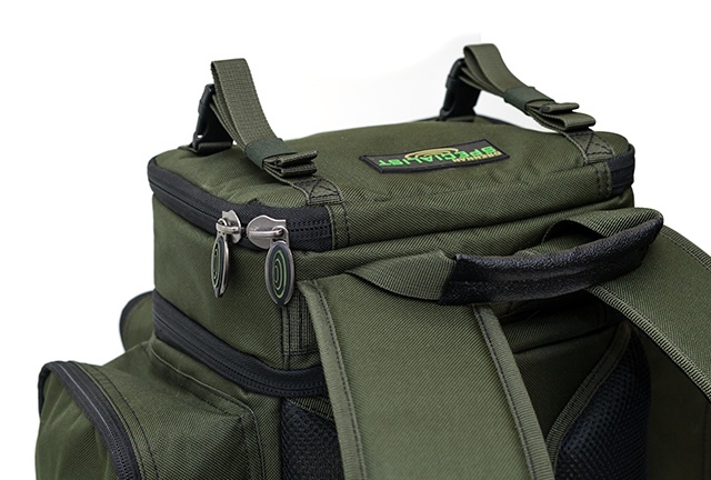 The rucksack is made from a tough and durable 600 denier fabric with a reinforced waterproof base. The bag has three external zipped pockets, along with a foil-lined top compartment which is ideal for storing bait and extra items of tackle. The inside of the bag is padded and also has an internal clear zipped pocket on the bottom of the lid.